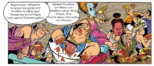 Ζούν καρικατούρες που υποδύονται τους Έλληνες σε ένα θεατρικό δρώμενο χυδαίας κωμωδίας. Μιας κωμωδίας με χοντροκομμένο και χυδαίο χιούμορ, που περιλαμβάνει βυζιά, κώλους, φαλλούς, μουτζουρωμένα με κραγιόν, πούδρα πρόσωπα ποτισμένα στο πατσουλί.