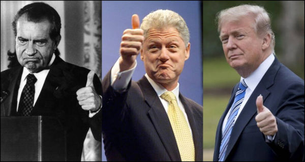Δεν πρέπει να ξεχνάμε, βέβαια, τη περίπτωση του προέδρου Richard Nixon (1913 – 1994) ο οποίος, στα 1974 οδηγήθηκε σε παραίτηση κατά τη διενέργεια έρευνας που αφορούσε το σκάνδαλο Watergate και τη προσπάθεια συγκάλυψής του. Αντιμέτωπος με τις κατηγορίες παρακώλυσης της δικαιοσύνης, κατάχρησης εξουσίας και περιφρόνησης του Κογκρέσου, ο τότε Αμερικανός Πρόεδρος επέλεξε να αποχωρήσει, αποτελώντας την μοναδική περίπτωση παραιτηθέντα Αμερικανού προέδρου. Και τότε το ενδιαφέρον του κοινού ήταν τεράστιο : 80% των Αμερικανών παρακολούθησαν τουλάχιστον εν μέρει, από το καναπέ τους την πιο “hot ημερήσια σαπουνόπετρα» (Variety).