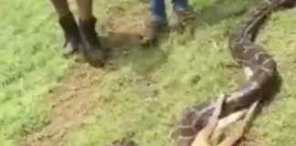 Με μια χαψιά! Φίδι τρώει ελάφι (video)