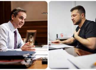 Τηλεφωνική επικοινωνία είχαν το μεσημέρι της Παρασκευής 25/3 ο πρωθυπουργός Κυριάκος Μητσοτάκης και ο πρόεδρος της Ουκρανίας Βολοντίμιρ Ζελένσκι.