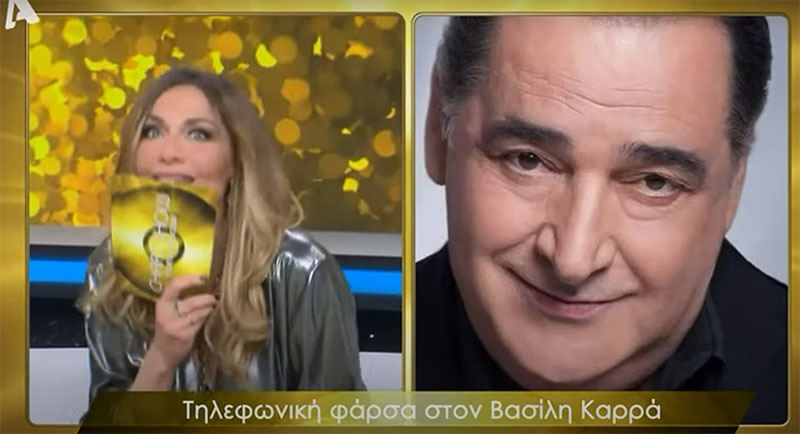 Οι άριστες σχέσεις του Βασίλη Καρρά με τη Δέσποινα Βανδή είναι γνωστές, συνεπώς η τραγουδίστρια στην πρεμιέρα της εκπομπής της «Chart Show» στον Alpha αποφάσισε να κάνει μία φάρσα στον φίλο της.