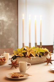 ενώ τα μικρά κεριά, ιδανικά σε σχήμα δέντρου, και τα κατακόκκινα αλεξανδρινά σε διαφορετικά μεγέθη θα δώσουν την γιορτινή πινελιά που θέλετε. Έτοιμοι για τα Χριστούγεννα!