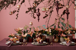 Τα μίνι αλεξανδρινά χαρίζουν λάμψη σε κάθε τραπέζι. Φέτος, η τάση είναι να συνδυάζετε ροζ, φούξια και λευκά αλεξανδρινά για ακόμη πιο ιδιαίτερο αποτέλεσμα. Ταιριάξτε επίσης όμορφα, χριστουγεννιάτικα στολίδια σε παστέλ χρώματα και μεταλλικές υφές.
