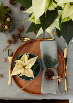 Less is more. Αυτός ο κανόνας πέρα από την καθημερινή ζωή, βρίσκει εφαρμογή και στη χριστουγεννιάτικη διακόσμηση. Τι πιο όμορφο από μερικά φρέσκα λευκά και μπεζ αλεξανδρινά στις γλάστρες τους ή τυλιγμένες με απλό χαρτί περιτυλίγματος; Χαρίστε χριστουγεννιάτικη διάθεση στο τραπέζι σας με τον πιο απλό και ανεπιτήδευτο τρόπο.