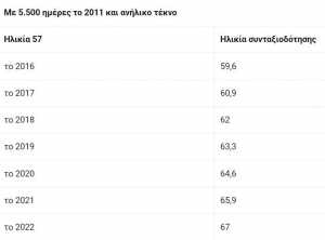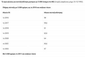 Ασφαλισμένη στο ΙΚΑ πριν το 1992 που είχε 5.200 ημέρες ασφάλισης ως το 2010 και ανήλικο τέκνο τότε μπορεί να αναγνωρίσει 300 ημέρες ανεργίας ή ασθένειας το 2022 και να κατοχυρώσει τις προϋποθέσεις του 2010, δηλαδή να πάρει σύνταξη με τα όρια ηλικίας που ισχύουν το έτος που κλείνει τα 50 για μειωμένη ή τα 55 για πλήρη. Αν δηλαδή η ασφαλισμένη έκλεισε τα 55 το 2021, μπορεί να πάρει μειωμένη στα 56,9, αρκεί να έχει 5.500 ένσημα το 2010 με αίτηση εξαγοράς πλασματικού χρόνου και το 2022.