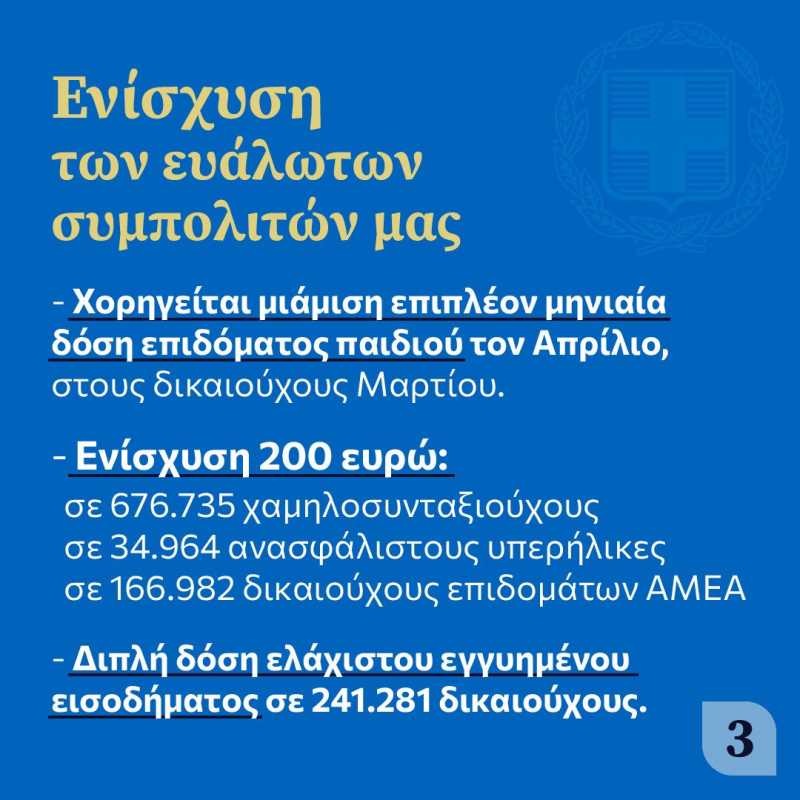 β. «Ενισχύουμε ευάλωτους συμπατριώτες μας με έκτακτη ενίσχυση που θα καταβληθεί πριν το Πάσχα