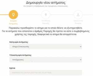 Στην επιλογή κατηγορία αιτήματος επιλέγουν «αίτημα επικοινωνίας» και στην υποκατηγορία αιτήματος την επιλογή «αποζημιώσεις».