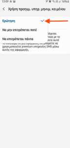 Βήμα 5: Επειδή οι περισσότεροι χρήστες προβαίνουν στη διαδικασία αποκλεισμού SMS σε πενταψήφιους αριθμούς, θα σας δοθούν 3 επιλογές: “Ερώτηση“, “Να μην επιτρέπεται ποτέ“, “Να επιτρέπεται πάντα“, απ’ όπου θα πρέπει να επιλέξετε “Ερώτηση“.