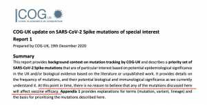Όπως βλέπετε στο συνημμένο αρχείο οι ερευνητές του Cog-UK θεωρούν όμως πως δεν υπάρχει λόγος ανησυχίας για τη χρήση των εμβολίων. Εάν ο ιός μεταλλαχθεί σε πιο ανθεκτική μορφή, τα εμβόλια μπορούν να τροποποιηθούν για να είναι εκ νέου αποτελεσματικά. Όπως γίνεται κάθε χρόνο με το εμβόλιο της γρίπης.