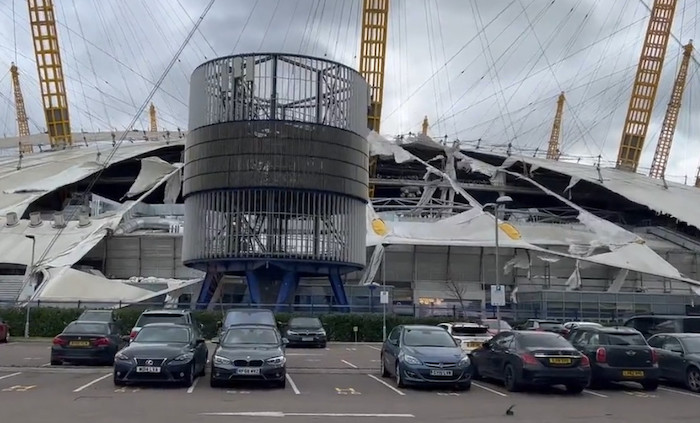 #BREAKING: Roof of London's O2 arena shredded by storm Eunice.#storm pic.twitter.com/KoVCmZeVVL