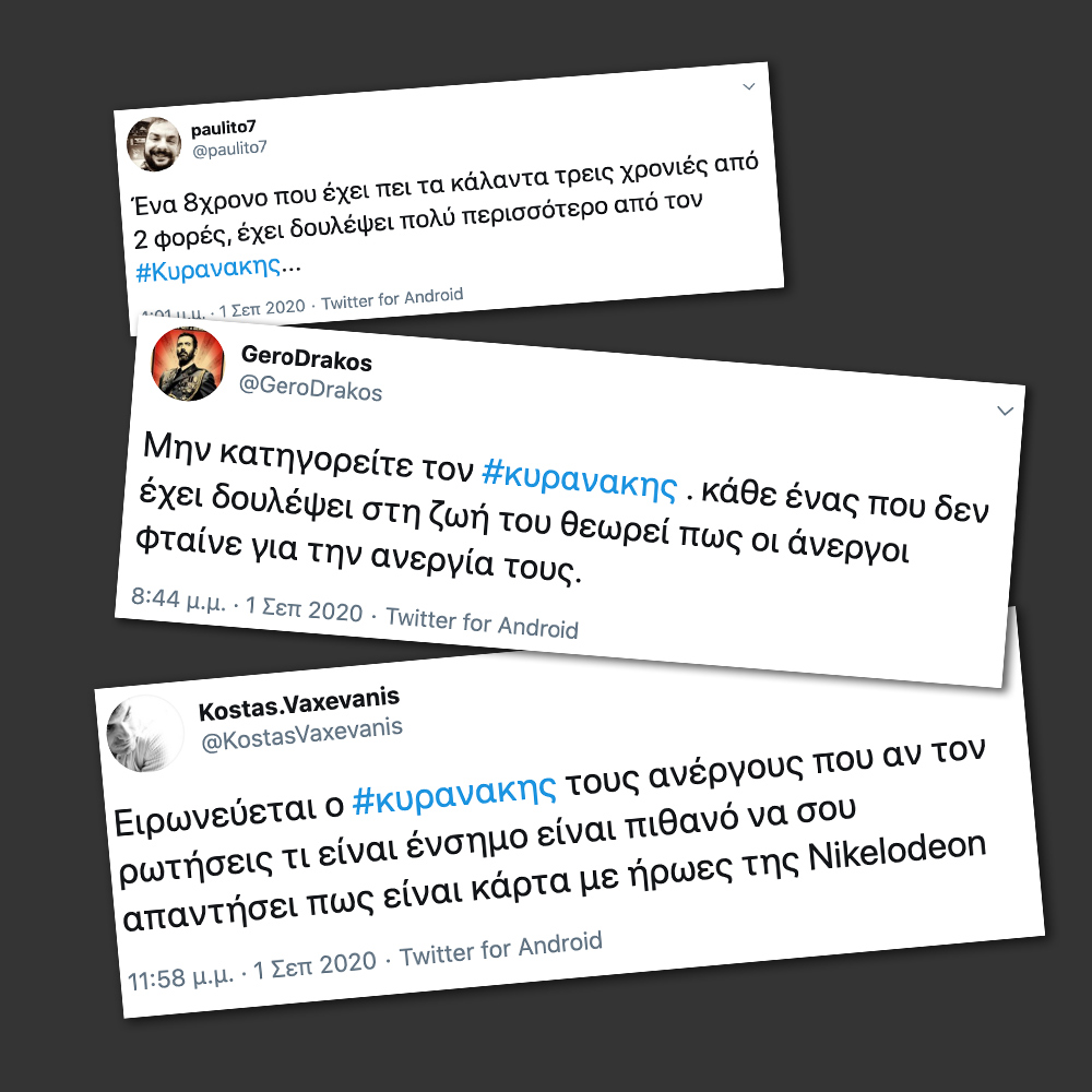 Την δεύτερη μέρα το ίδιο παρασύστημα βομβάρδισε το διαδίκτυο με φράσεις τύπου “Που έχει δουλέψει ο Κυρανάκης; Δεν έχει ούτε ένα ένσημο”. Μέχρι και τον παππού μου και τη μάνα μου ειρωνεύονταν. Αυτό είναι το επίπεδο πολιτικής κριτικής που τους έχει μάθει η Κουμουνδούρου να κάνουν.