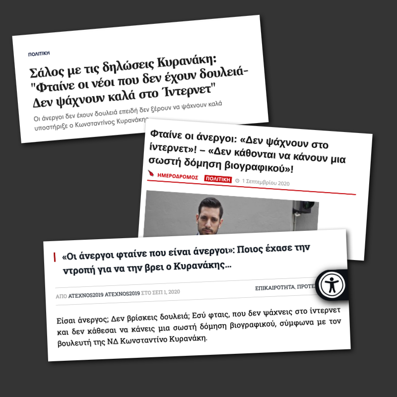 Την πρώτη μέρα με δημοσιεύματα και δηλώσεις των βουλευτών του ΣΥΡΙΖΑ και του Α. Τσίπρα γέμισαν το διαδίκτυο με ψευδείς δηλώσεις τύπου “Κυρανάκης: Οι άνεργοι φταίνε που είναι άνεργοι”.