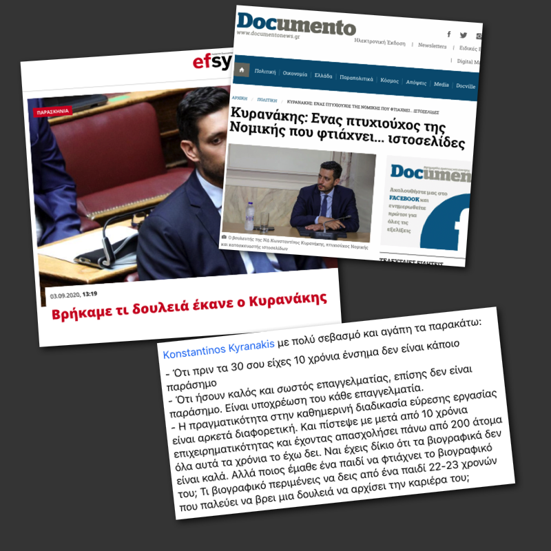 Την τρίτη μέρα, και αφού έχω ερωτηθεί από αρκετούς δημοσιογράφους πού έχω δουλέψει, η γραμμή άλλαξε: “Τελικά μάθαμε που δούλευε ο Κυρανάκης” αλλά ας το κανιβαλίσουμε και αυτό. “Δεν είναι κανένα παράσημο να έχεις 10 χρόνια ένσημα πριν τα 30, υποχρέωσή σου είναι”. Το διάβασα και αυτό.