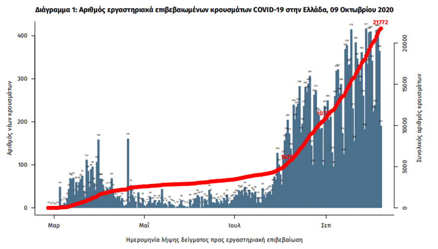 Από την 1η Ιανουαρίου 2020 μέχρι σήμερα, στα εργαστήρια που διενεργούν ελέγχους για τον νέο κορωνοϊό (SARS-CoV-2) και που δηλώνουν συστηματικά στον ΕΟΔΥ το σύνολο των δειγμάτων που ελέγχουν, έχουν συνολικά ελεγχθεί 1400857 κλινικά δείγματα ενώ από Μονάδες Υγείας και Κλιμάκια του ΕΟΔΥ που διενεργούν ελέγχους Rapid Ag έχουν ελεγχθεί 21906 δείγματα.