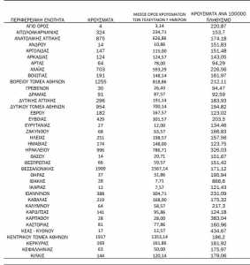 Δείτε όμως αναλυτικά τη γεωγραφική κατανομή των κρουσμάτων ανά περιοχή: