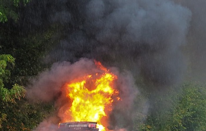 Στο όχημα επέβαιναν συνολικά τρία άτομα, οι οποίοι ευτυχώς πρόλαβαν να βγουν από το αυτοκίνητο τελευταία στιγμή.