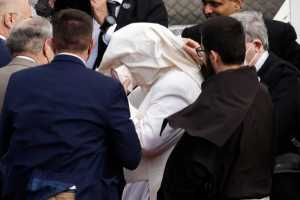 Ο δυνατός αέρας πάντως στο αεροδρόμιο του Ελ. Βενιζέλος ήταν υπαίτιος για ακόμη ένα συμβάν, καθώς ο Πάπας πριν ανέβει στο αεροπλάνο κυριολεκτικά “κουκουλώθηκε” από το ράσο του με αποτέλεσμα να χρειαστεί η παρέμβαση των συνεργατών του για να προληφθεί πιθανό ατύχημα.
