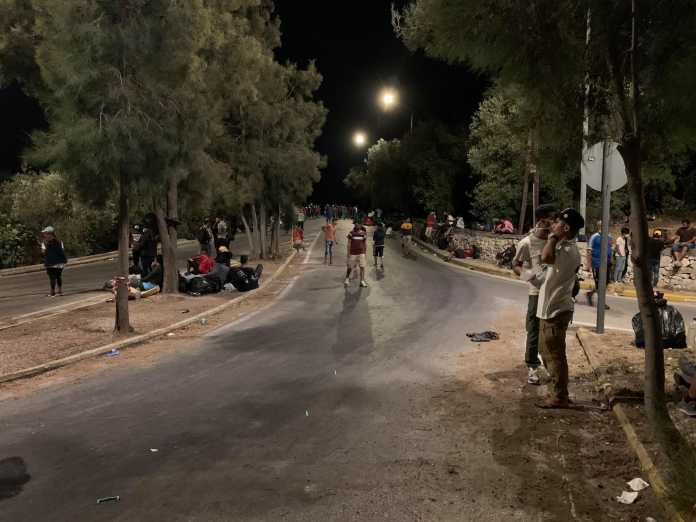 Στις φλόγες παραδώθηκε για δεύτερο βράδυ ο προσφυγικός καταυλισμός της Μόριας, ολοκληρώνοντας την καταστροφή της μεγάλης πυρκαγιάς της Τρίτης.