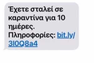 “Έχετε σταλεί σε καραντίνα για 10 ημέρες”, και στη συνέχεια παραθέτει ένα σύνδεσμο (link), τον οποίο ο χρήστης δεν πρέπει να ακολουθήσει.