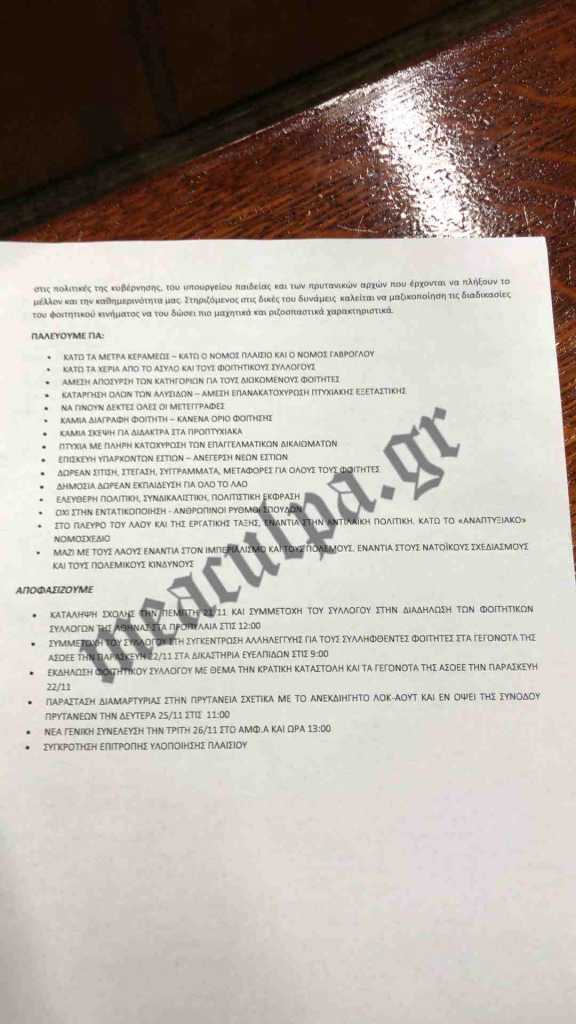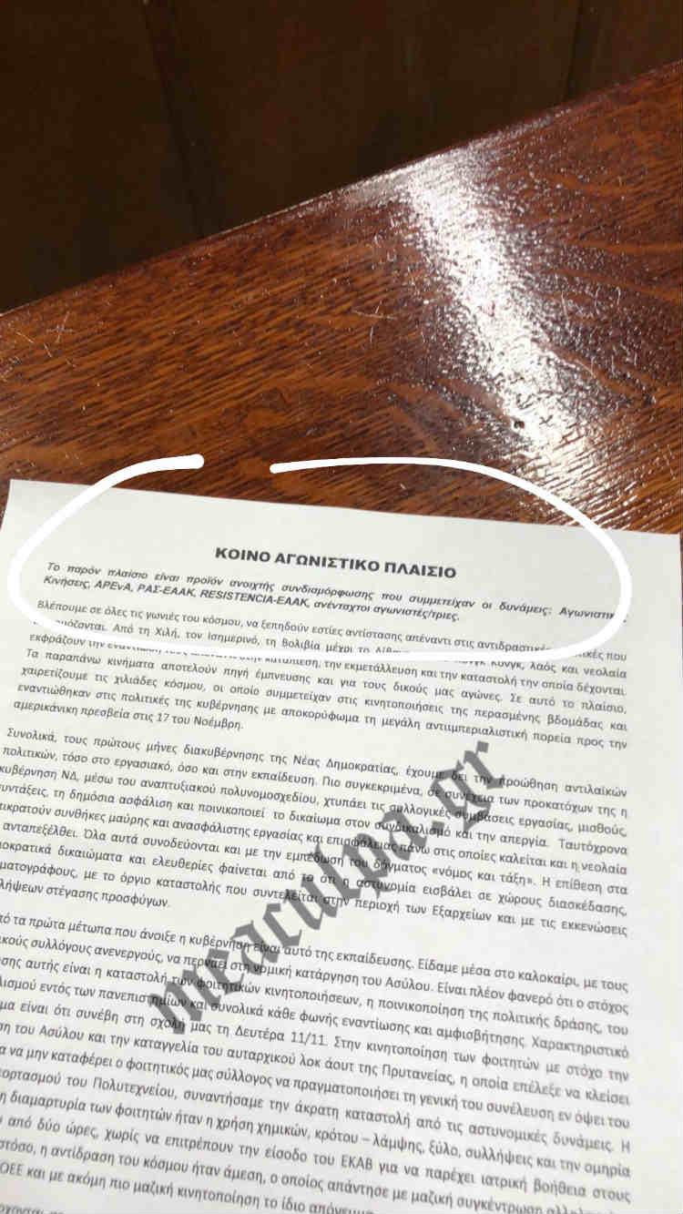 Προκήρυξαν, δε, την κατάληψη της σχολής, αύριο Πέμπτη 21 Νοεμβρίου, ως ένδειξη διαμαρτυρίας στην αλλαγή ασύλου και ζητώντας την απόσυρση κατηγοριών διωκόμενων φοιτητών. Μεταξύ άλλων, ζητούν να γίνουν δεκτές όλες οι μετεγγραφές, ανεξαρτήτως κριτηρίων, αλλά και… “ανθρώπινους ρυθμούς σπουδών”.