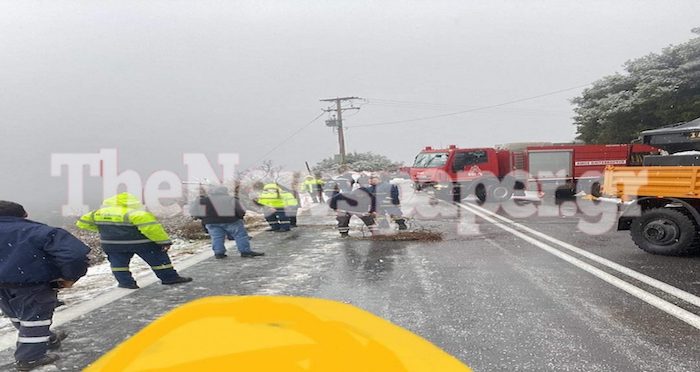 Σύμφωνα με το thenewspaper.gr, ένα περιπολικό έφυγε από την πορεία του, λόγω του παγωμένου οδοστρώματος κατέληξε σε γκρεμό στην περιοχή της Πορταριάς.
