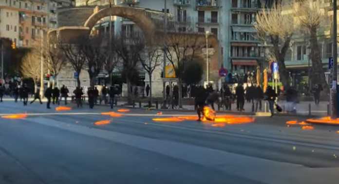 Μετά τη λήξη της πορείας των αντιεξουσιαστών ξέσπασαν επεισόδια στην Καμάρα, με τους διαδηλωτές να κάνουν ρίψη μολότοφ και η ένταση συνεχίστηκε λίγη ώρα αργότερα στη συμβολή των οδών Μακεδονικής Αμύνης και Ολύμπου.