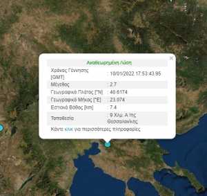 Ασθενής σεισμική δόνηση σημειώθηκε πριν από λίγο, Δευτέρας 10.01.22, στη Θεσσαλονίκη.