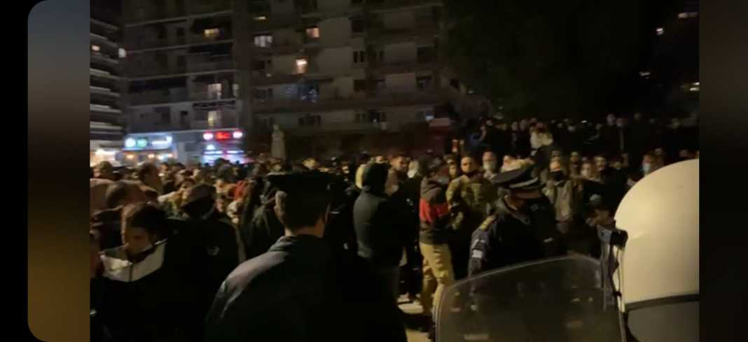 Αστυνομικές δυνάμεις έσπευσαν στο σημείο της διαδήλωσης και απέτρεψαν τα άτομα από το να προχωρήσουν σε αποκλεισμό δρόμου.