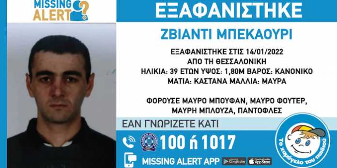 Σύμφωνα με τη σχετική ανακοίνωση, στις 14/1/2022, εξαφανίστηκε από την περιοχή της Θεσσαλονίκης ο Μπεκαούρι (επ.) Ζβιάντι (ον.), 39 ετών.