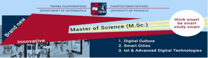 Το Πρωτοποριακό Μεταπτυχιακό με τίτλο «Ψηφιακός Πολιτισμός, Έξυπνες Πολεις, IoT (Διαδίκτυο των Πραγμάτων) και Προηγμένες Ψηφιακές Τεχνολογίες» (Digital Culture, Smart Cities, IoT and Advanced Digital Technologies) συνεχίζεται για τρίτη συνεχή χρονιά στο Πανεπιστήμιο Πειραιώς, με καταληκτική ημερομηνία υποβολής αιτήσεων 23 Οκτωβρίου 2020. http://www.cs.unipi.gr/dcsciot/