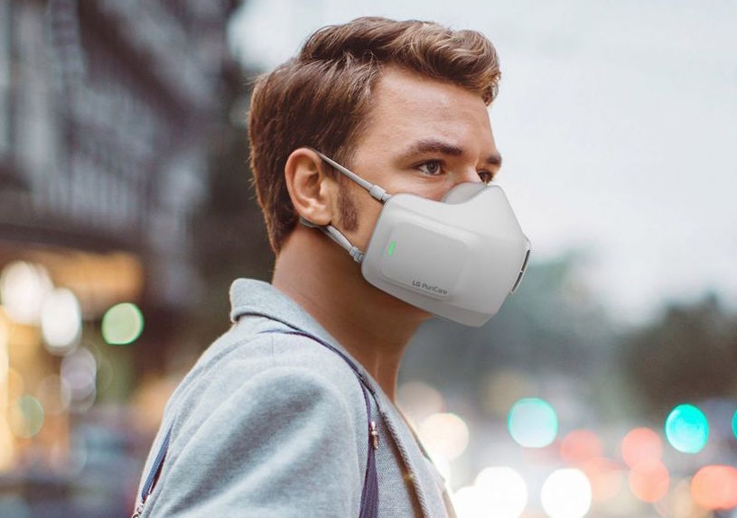 Η PuriCare Wearable της LG Electronics, η οποία βγαίνει σε ένα μέγεθος και ζυγίζει όσο μια μάσκα του σκι, είναι εξοπλισμένη με δύο ανεμιστήρες και υψηλής αποδοτικότητας φίλτρα σωματιδίων αέρα που καθαρίζουν τον αέρα που εισπνέεται και εκπνέεται από τον χρήστη.