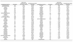 Από το σύνολο των 21.657 κρουσμάτων του νέου ιού στη χώρα 20 είναι εισαγόμενα εκ των οποίων 14 εντοπίστηκαν κατόπιν ελέγχων στις πύλες εισόδου της χώρας. Η κατανομή των 21.637 νέων εγχώριων κρουσμάτων ανά Περιφερειακή Ενότητα παρουσιάζεται στον παρακάτω πίνακα:
