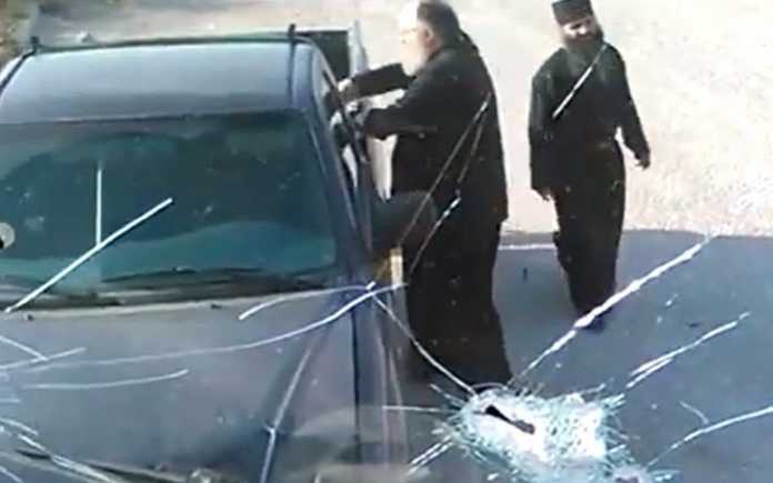 Ο ιερέας, όπως φαίνεται στο βίντεο, πέφτει με το αγροτικό του πάνω σε λεωφορείο σχολής οδηγών, και αντί να ανταλλάξει στοιχεία με τον οδηγό και να ειδοποιήσουν την τροχαία και την ασφαλιστική, βγαίνει έξαλλος από το αυτοκίνητο, αρπάζει από την καρότσα έναν λοστό και αρχίζει να σπάει το παρμπρίζ και τα τζάμια του λεωφορείου.