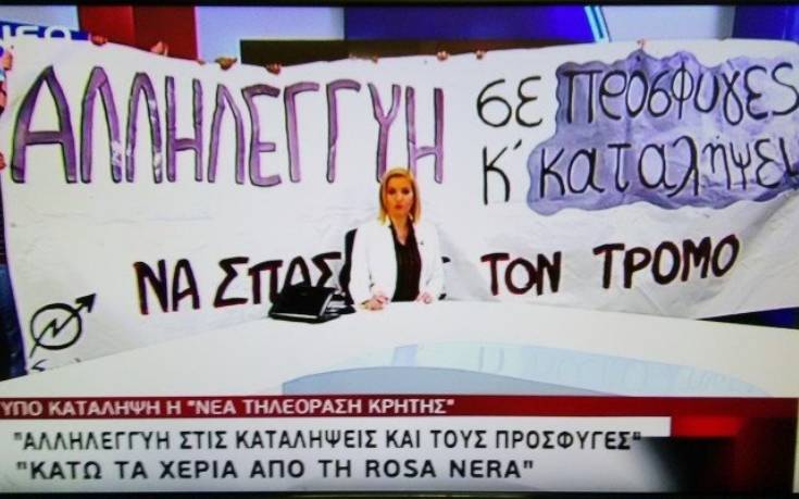 Αντιεξουσιαστές κατέλαβαν προσωρινά το studio της “Νέας Τηλεόρασης Κρήτης” στα Χανιά για να εκφράσουν την αλληλεγγύη τους στις καταλήψεις τις οποίες προτίθεται να “σπάσει” ο υπουργός Ασφαλείας του Πολίτη, Μιχάλης Χρυσοχοΐδης και παράλληλα μετέδωσαν βίντεο με μήνυμα προς την ηγεσία του Υπουργείου