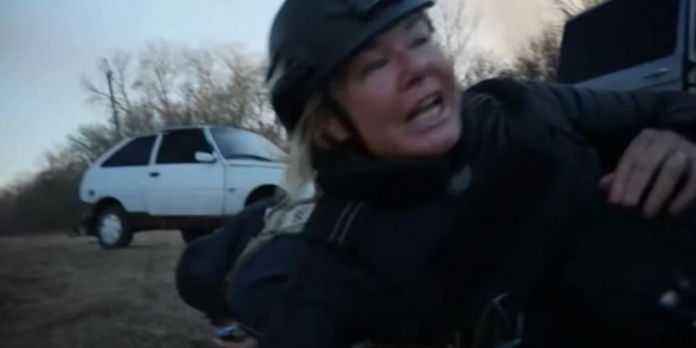 Η 59χρονη ειδική ανταποκρίτρια Άλεξ Κρόφορντ και η ομάδα της φαίνονται να προσπαθούν να καλυφθούν μέσα σε κραυγές και τον ήχο των διαπεραστικών βροντών που προκαλούνταν από τους βομβαρδισμούς, καθώς προσπαθούσαν να διασχίσουν τον ποταμό Desna, στην πόλη Τσερνίχιβ.
