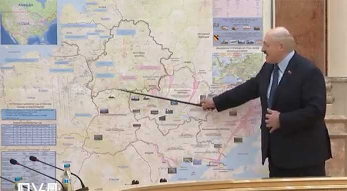 Ο πρόεδρος της Λευκορωσίας μπροστά σε χάρτη / Φωτογραφία: twitter video snapshot