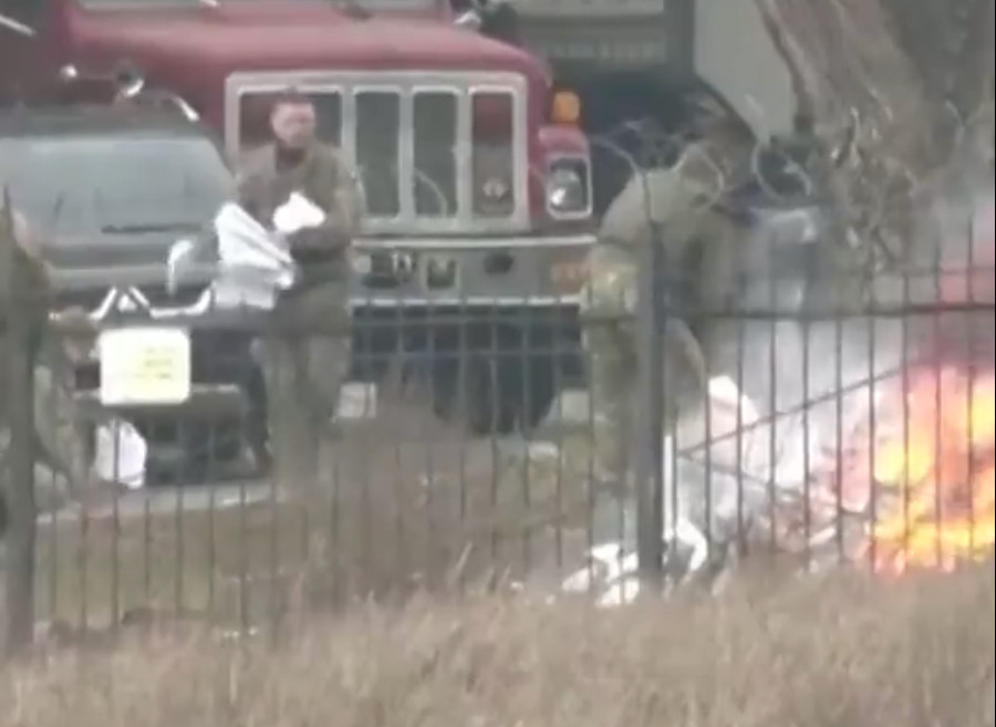 Βίντεο της Deutsche Welle που δημοσιεύθηκε στο Twitter, παρουσιάζει μια ομάδα στρατιωτών, οι οποίοι εθεάθησαν να καίνε έγγραφα και αντικείμενα έξω από το αρχηγείο πληροφοριών του ουκρανικού υπουργείου Άμυνας στο Κίεβο.
