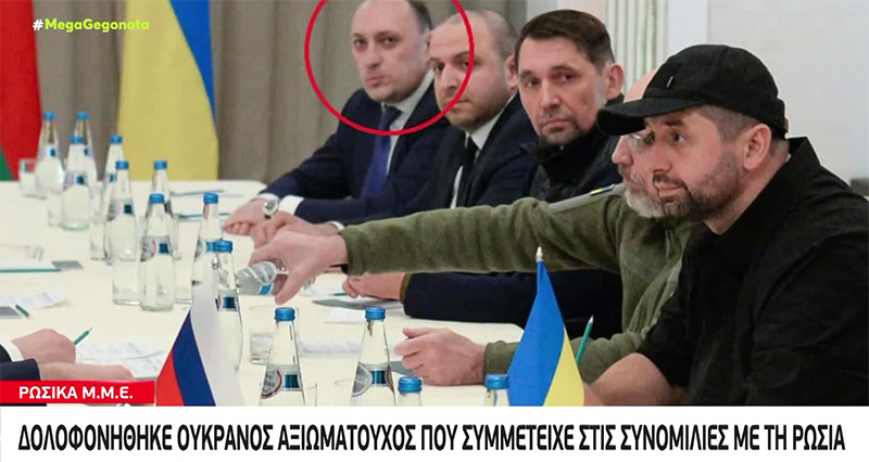 Σοκ έχει προκαλέσει στην Ουκρανία η είδηση πως μέλος της διαπραγματευτικής ομάδας της Ουκρανίας, κατά τον πρώτο γύρο των ειρηνευτικών συνομιλιών στο Γόμελ της Λευκορωσίας, φέρεται να σκοτώθηκε από ομοεθνείς του, μετά από κατηγορίες πως διέπραξε «εσχάτη προδοσία».