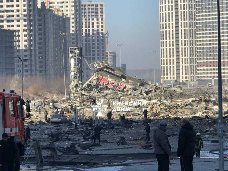 Το πρώτο φως της μέρας αποκάλυψε την απόλυτη καταστροφή στο εμπορικό κέντρο του Κιέβου, στα βορειοδυτικά της πόλης. Παντού καταστροφή και μπροστά από το mall, ένας τεράστιος κρατήρας, ενώ σοροί θυμάτων κείτονταν ακόμη, νωρίς το πρωί, μπροστά στο Retroville, την ώρα που πυροσβέστες και στρατιωτικοί έψαχναν στα συντρίμμια για θύματα.