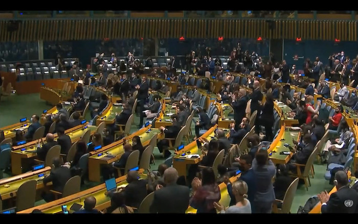 Το ψήφισμα εγκρίθηκε με συντριπτική πλειοψηφία: Από τα 193 μέλη, 141 χώρες ψήφισαν υπέρ, 5 κατά και 35 να δήλωσαν αποχή, συμπεριλαμβανομένης της Κίνας.