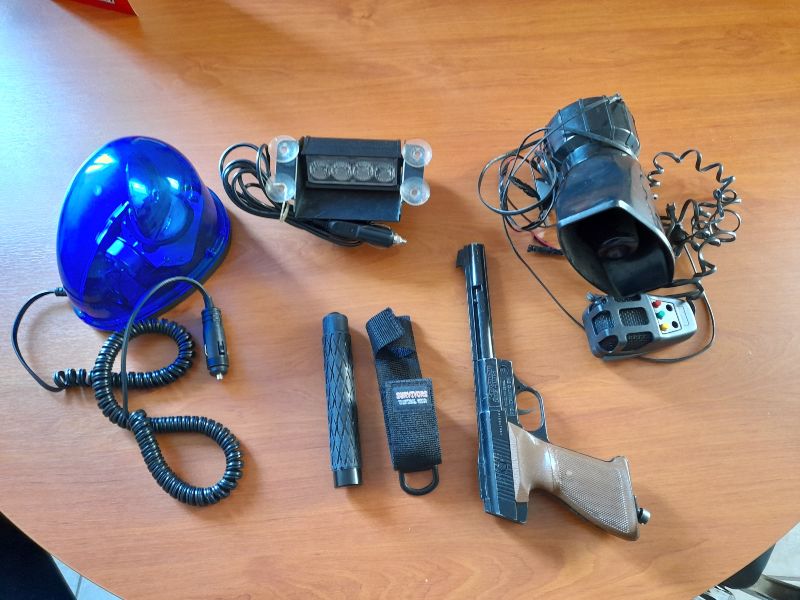 Οι δύο Έλληνες οδηγήθηκαν στην Υποδιεύθυνση Ασφάλειας Δυτικής Αττικής, όπου κατασχέθηκε το ανωτέρω όχημα, στο εσωτερικό του οποίου υπήρχε εγκατεστημένος αστυνομικός φάρος έτοιμος προς χρήση, συσκευή σειρήνας μεγαφωνικής, με ηχητικά σήματα όμοια με αυτά που χρησιμοποιούν τα περιπολικά οχήματα της Ελληνικής Αστυνομίας, καθώς και μπλε φώτα στο εμπρόσθιο μέρος που προσομοιάζουν με αυτά που φέρουν οχήματα εκτάκτου ανάγκης.