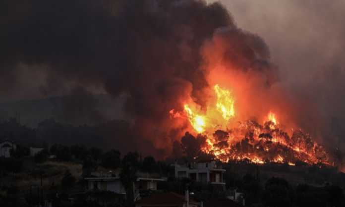 Οι άνεμοι σπρώχνουν τη φωτιά σε νότια κατεύθυνση προς τα Αθίκια και το Χιλιομόδι.