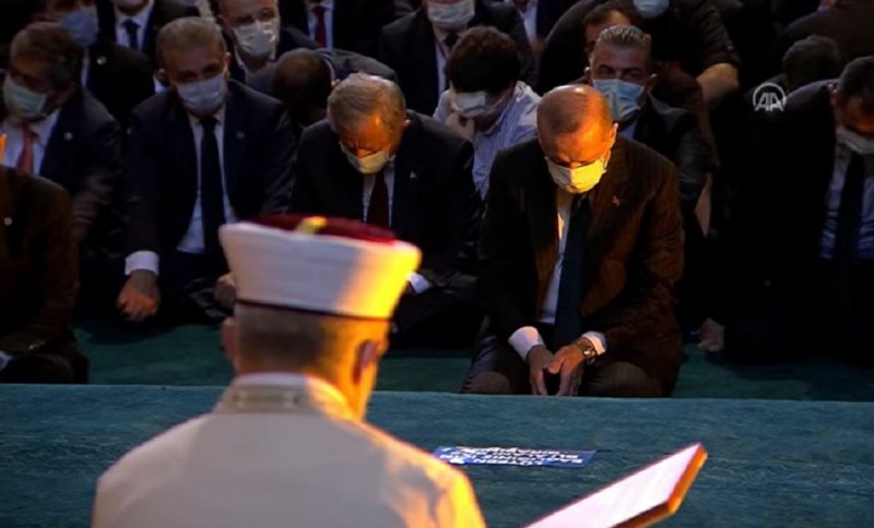 Χιλιάδες πιστοί συμμετείχαν σήμερα, παρουσία του προέδρου της Τουρκίας Ταγίπ Ερντογάν, στην πρώτη προσευχή, εντός και πέριξ της Αγίας Σοφίας, από την μετατροπή της σε τζαμί.