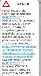 Με εντολή του υφυπουργού Πολιτικής Προστασίας, Νίκου Χαρδαλιά, ενεργοποιήθηκε το 112 στον Πόρο, που έστειλε σε όσους βρίσκονται στο νησί το ακόλουθο μήνυμα:
