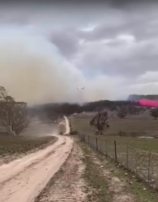 Στο βίντεο διακρίνεται ξεκάθαρα το αεροσκάφος τη στιγμή που αδειάζει επιβραδυντικό υγρό στην περιοχή-στόχο, στο Snowy Monaro στο νότιο τμήμα της Νέας Ουαλίας, πριν “εξαφανιστεί” μέσα στους καπνούς.