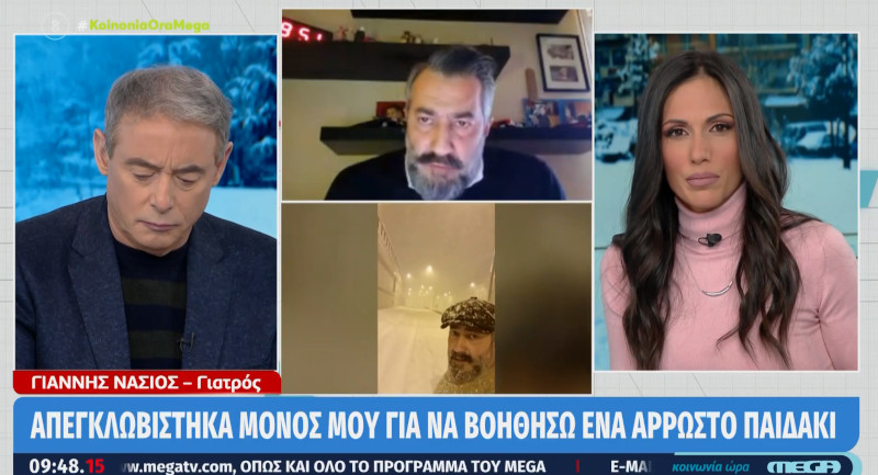 Για την απίστευτη περιπέτεια που έζησε στην Αττική Οδό, για τον τρόπο που κατέφερε να απεγκλωβιστεί ώστε να βοηθήσει ένα άρρωστο παιδί αλλά και για την πρόθεσή του να κινηθεί νομικά κατά της Αττικής Οδού, μίλησε στην εκπομπή «Κοινωνία Ώρα MEGA» ο γιατρός Γιάννης Νάσιος.