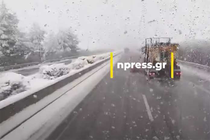Από το βίντεο είναι εμφανές ότι η χιονόπτωση είναι έντονη και στην Εθνική Οδό Αθηνών – Λαμίας, με την κυκλοφορία πάντως των οχημάτων να διεξάγεται κανονικά μέχρι αυτή τη στιγμή.