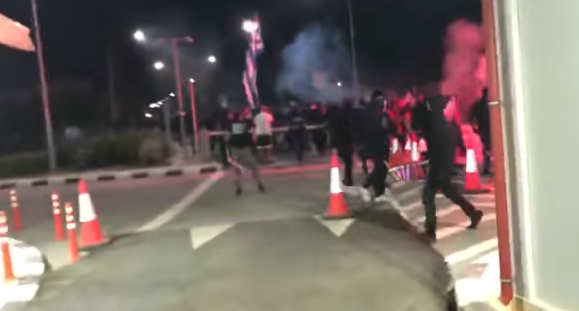 Σύμφωνα με ρεπορτάζ του sigmalive.com, άναψαν βεγγαλικά και φώναζαν συνθήματα «Η Κύπρος είναι ελληνική».