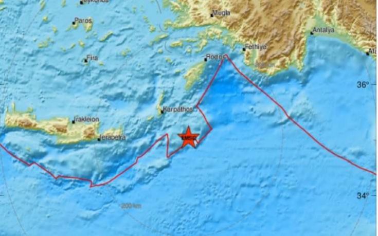 Νέα ισχυρή σεισμική σημειώθηκε πριν από λίγο στα Δωδεκάνησα, στη θαλάσσια περιοχή 160 χιλιόμετρα νότια της Ρόδου και 76 χιλιόμετρα νοτιοανατολικά της Καρπάθου.