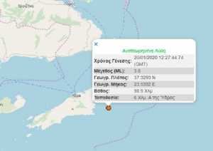 Ειδήσεις Σεισμική δόνηση 3,8 Ρίχτερ στην Ύδρα January 20, 2020 0 Share Facebook Twitter Pinterest WhatsApp Linkedin Email Viber Σεισμική δόνηση 3,8 της κλίμακας Ρίχτερ σημειώθηκε πριν από λίγο στην θαλάσσια περιοχή της Ύδρας, σύμφωνα με το Γεωδυναμικό Ινστιτούτο Αθηνών. Το επίκεντρο του σεισμού εντοπίζεται 6 χλμ. ανατολικά της Ύδρας και το εστιακό βάθος στα 98,9 χλμ.